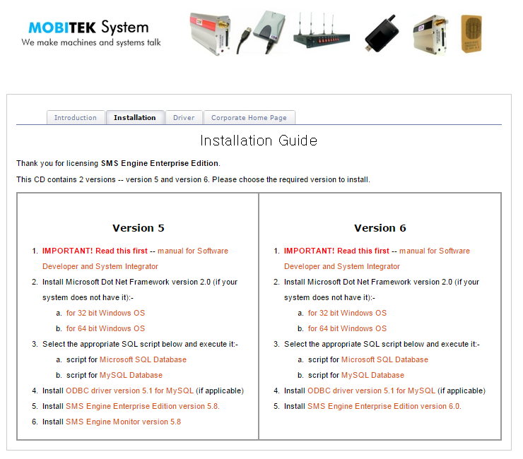 MOBITEK SMS Engine — Enterprise Edition CD is Revised MOBITEK SMS Engine — Enterprise Edition version 6 CD ISO File: MOBITEK SMS Engine-EE version 5.8.1 and 6_2015-06-23.iso