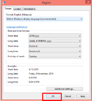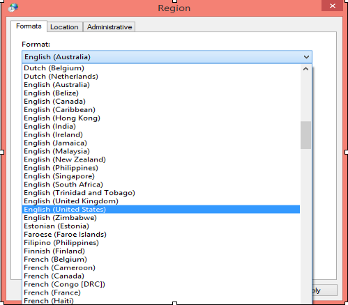 – Change the format to English (US). then click OK