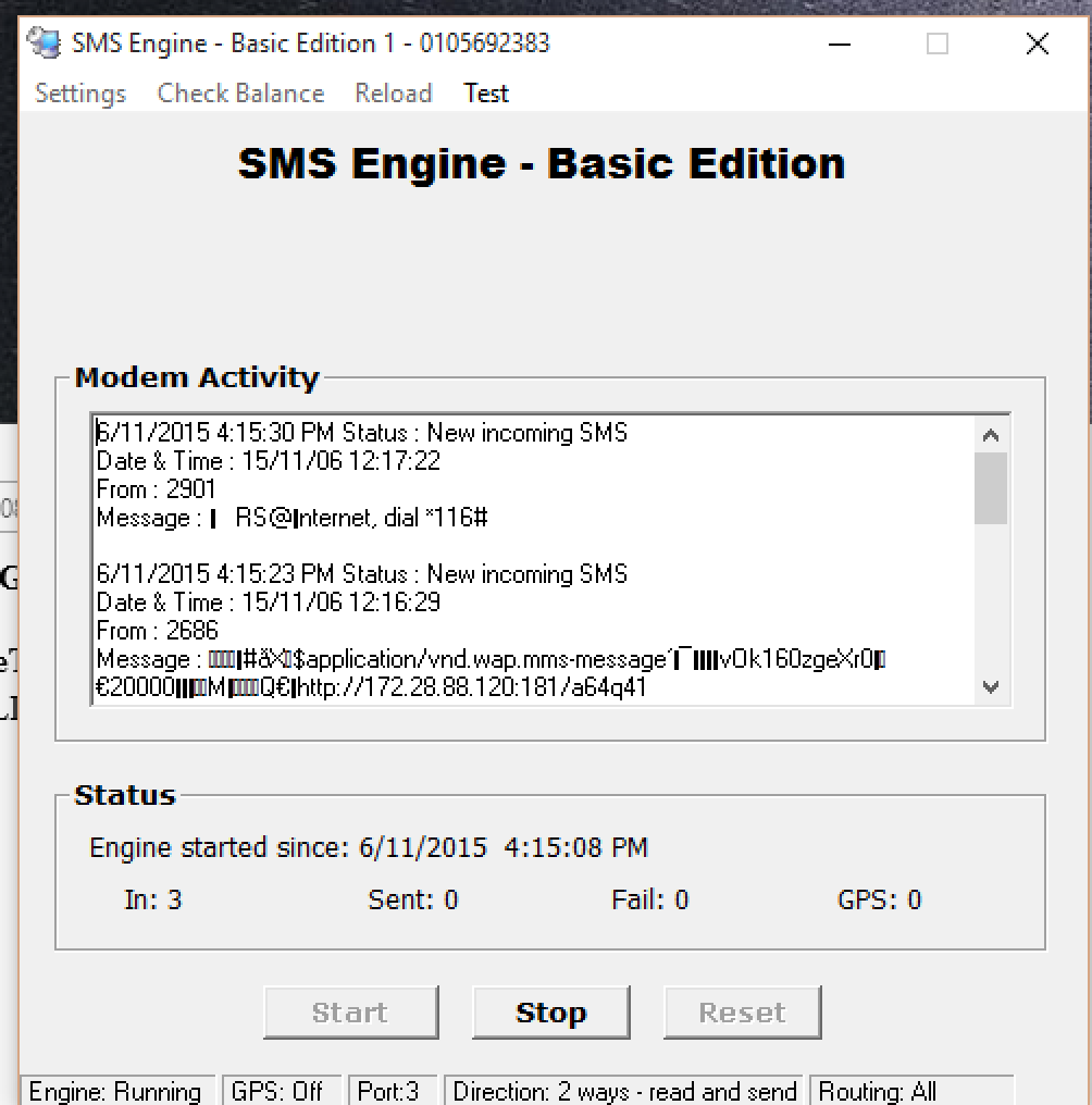 SMS are stuck in the outbox, it won’t send out. But Engine can received incoming SMS into inbox.