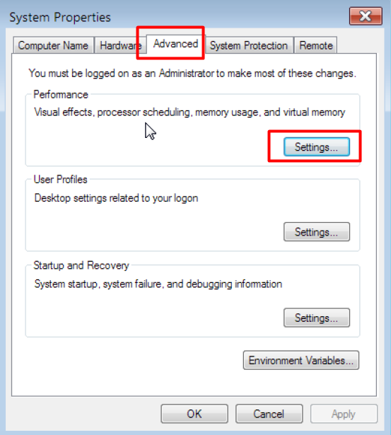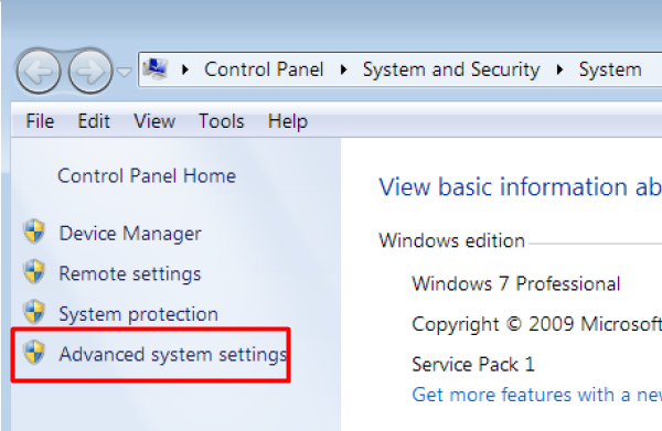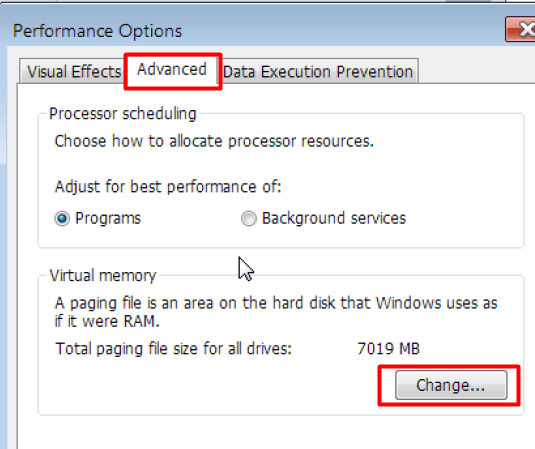 - uncheck “Automatically manage paging file size for all drives”, select the hard disk, check “System managed size”, then “Set”