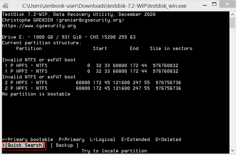 - for more information refer to http://www.cgsecurity.org/wiki/TestDisk_Step_By_Step#Quick_Search_for_partitions