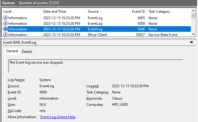 Solution: If you want to know what was the exact last shut down time and start-up time of your computer,  go to the Event Viewer -> Windows Log -> System and look for:-