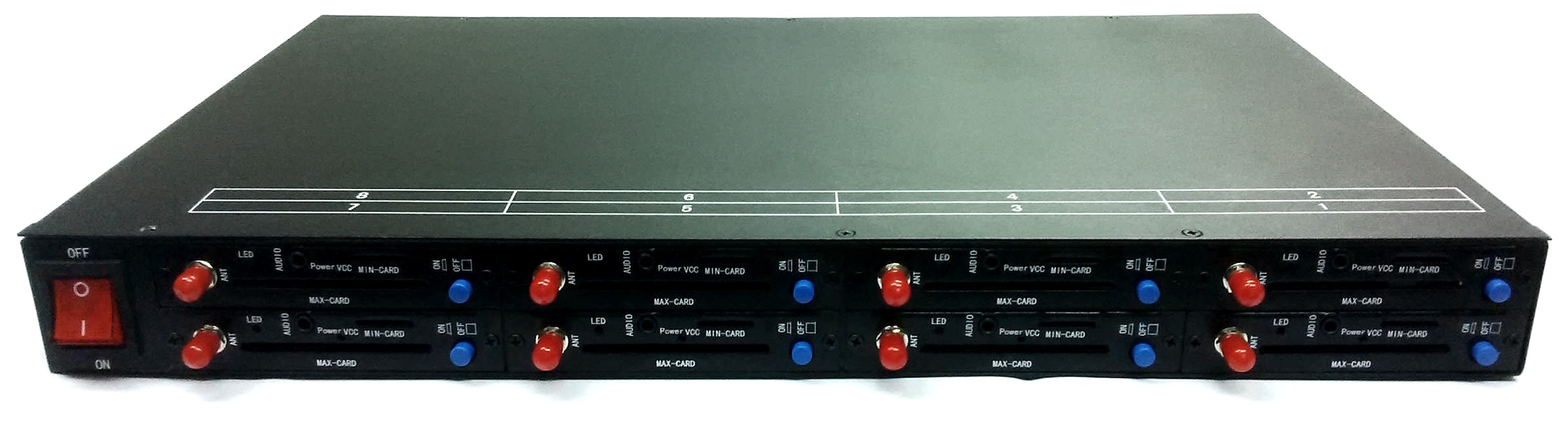 MOBITEK® Q24 STK MODEM HUB, model B-8-L-SG, has 8 modems supporting 8 SIM cards. Each modem in the hub has an IP address with different port number: