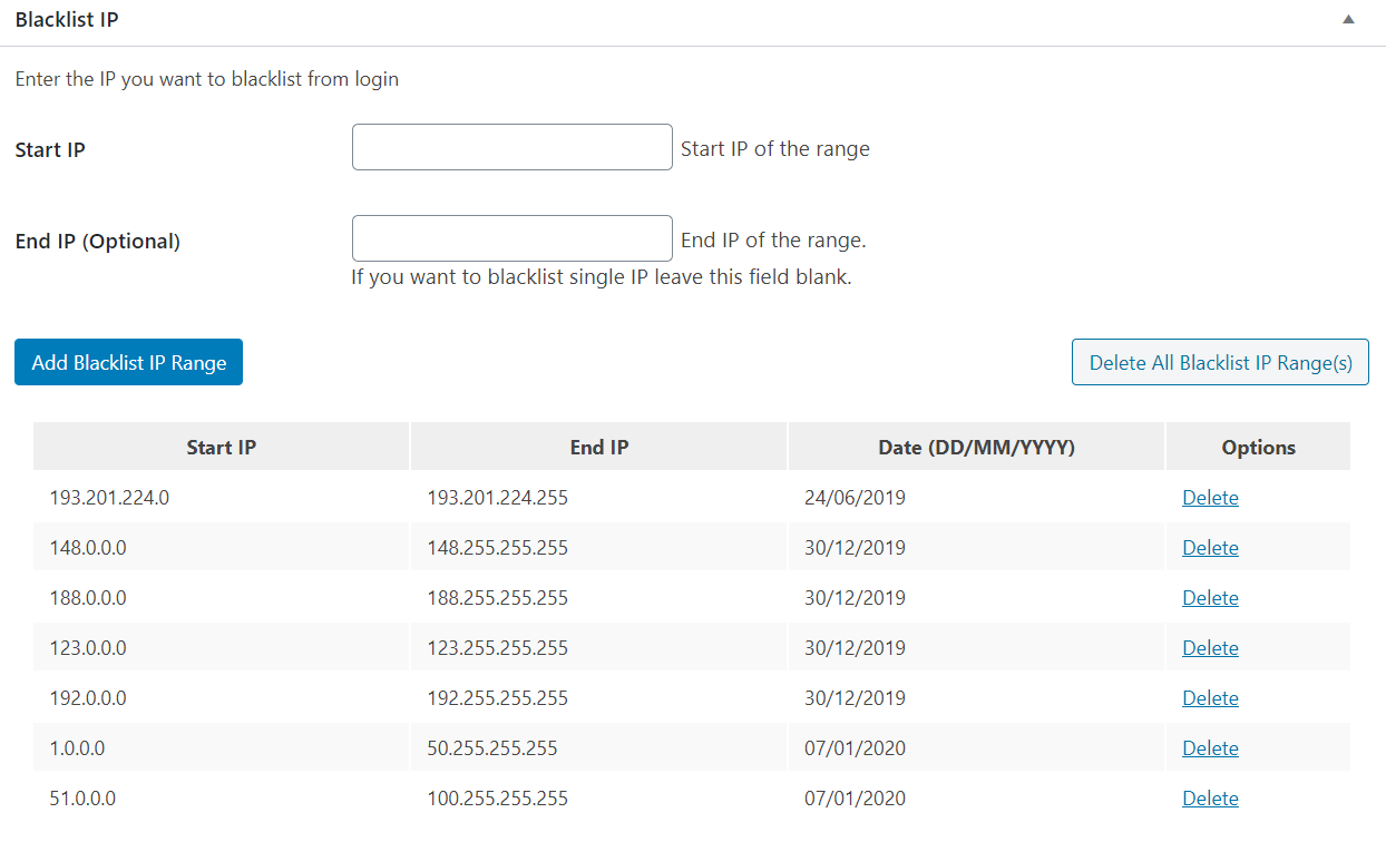 - Under “Blacklist”, enter range of IP address that is not in your home country. This will reduce brute force attack significantly.