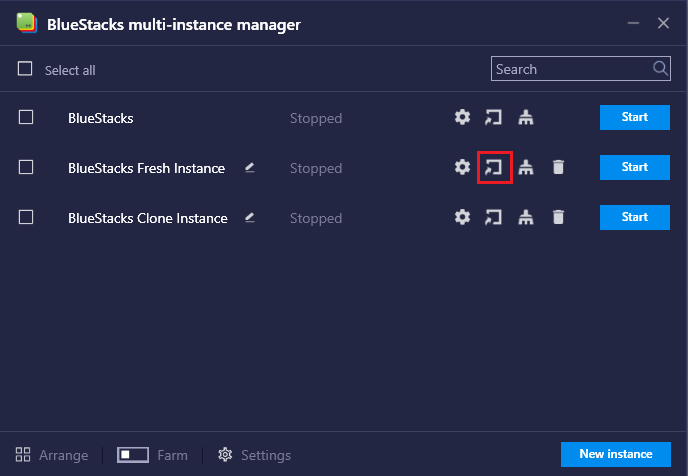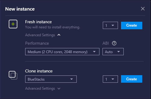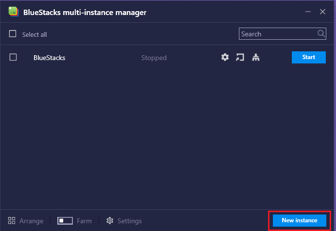 - Open BlueStacks multi-instance manager. Click “New Instance“.