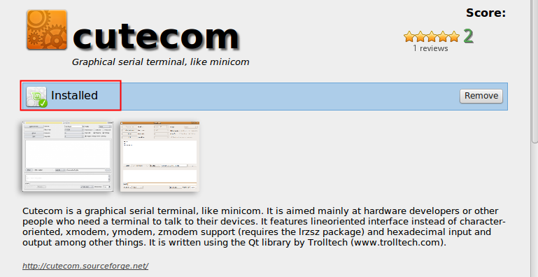 - Optional — install “Cutecom” from Software Manager.