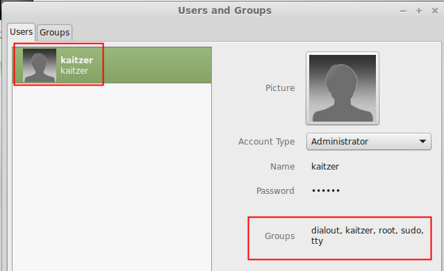 - Click on the current user and then click on “Groups”.