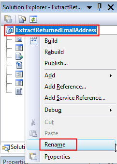 3. Open the project in Visual Basic. In “Solution Explorer”, right-click on project → “Rename”.