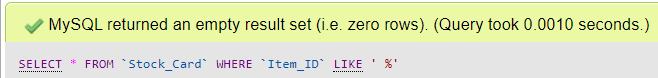 UPDATE `Stock_Card-20220218` SET `Item_ID`=TRIM(`Item_ID`) WHERE `Item_ID` LIKE '% ';