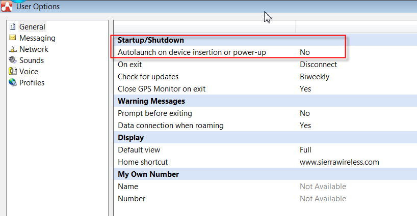 - To disable auto-start AirCard Watcher, set to “No”.