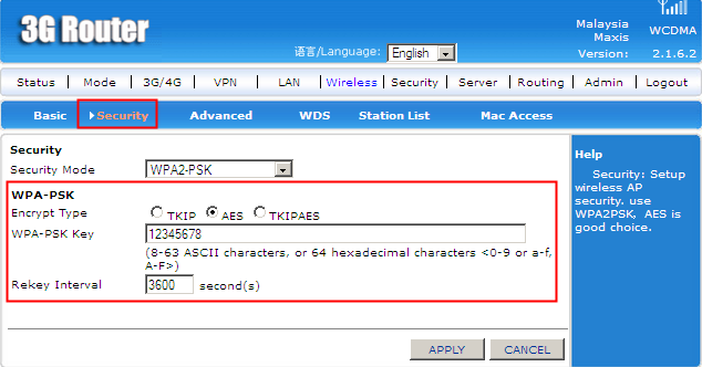 WPA-PSK Key need to fill in to secure the wireless network and rekey interval is the the default time of 3600 seconds.