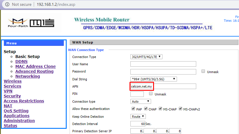 2. Select a preferred network from the table below and key-in into the APN on the F3424 configuration page.