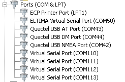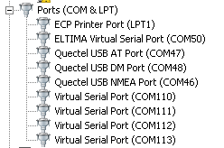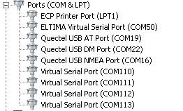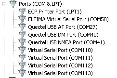 Step 8: After computer is restarted, connect the modem to the computer. In device manager, the connected modem is listed as ‘Quectel USB AT Port (UMTS)’. In this example, the modem is connected to COM port number 8.