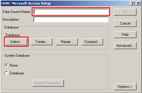 - In “ODBC Microsoft Access Setup”, enter any “Data Source Name”. This name will be used in DBeaver later. So remember it. After that click “Select…” button.