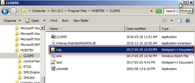 - You can see the log file is generated on your path C:/Program Files/Mobitek/CLISMS.
