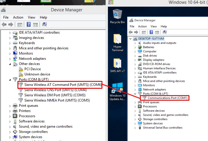 - Open the Device Manager and look into the Ports to find the modem is connected in which port on “Sierra Wireless AT Command Port (UMTS)”.