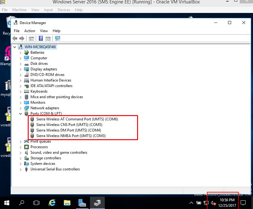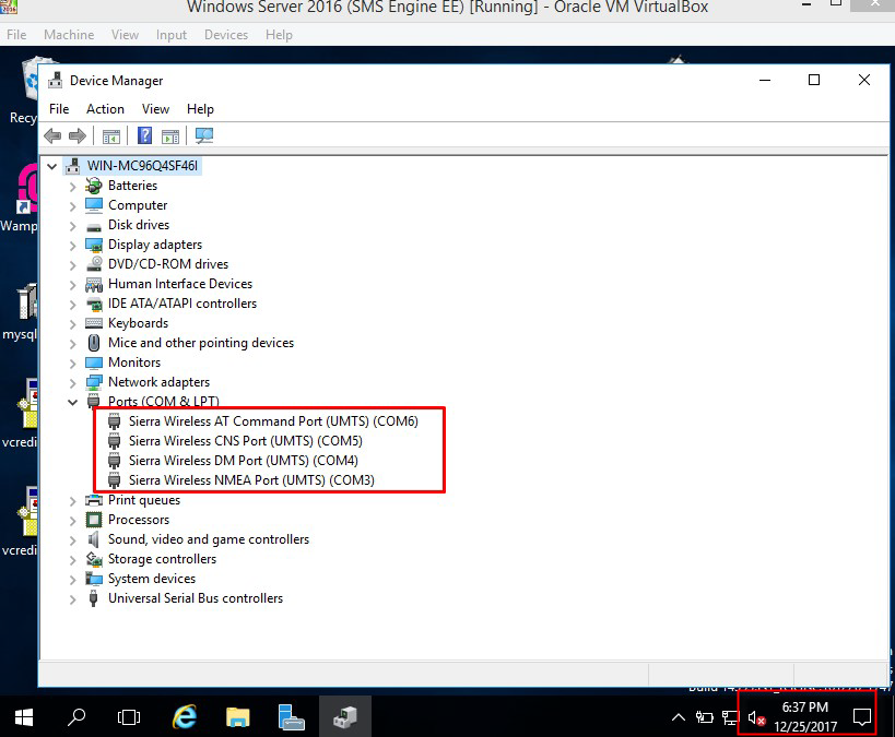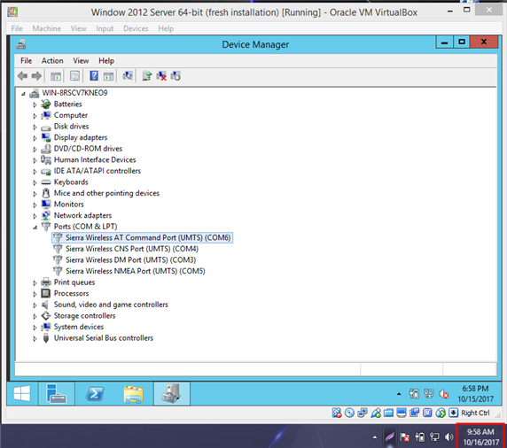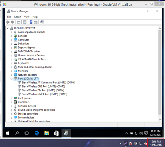 - The “Device Manager” in VirtualBox will also show 4 COM ports “Prolific USB-to-Serial Comm Port” have been added.