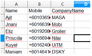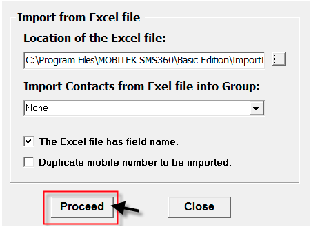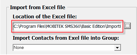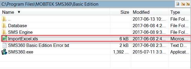 - Use the Excel file that was installed. The Excel file is located in C:\Program Files\MOBITEK SMS360\Basic Edition.