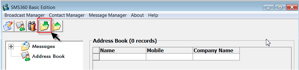 - At SMS360 application, click this button to import contacts from excel into SMS360 address book