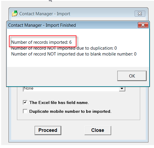 - Number of imported contacts will be shown