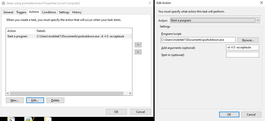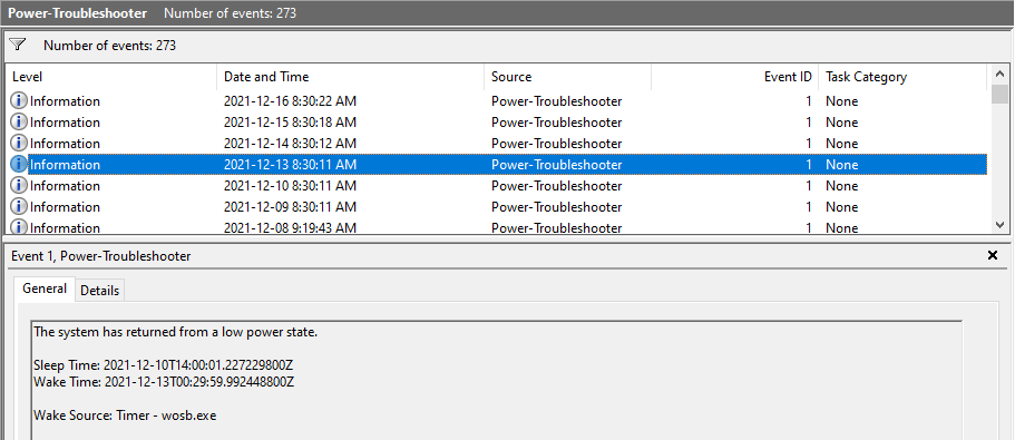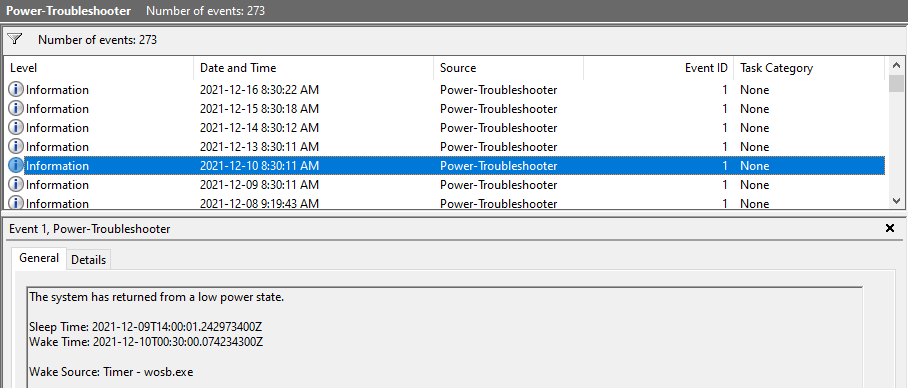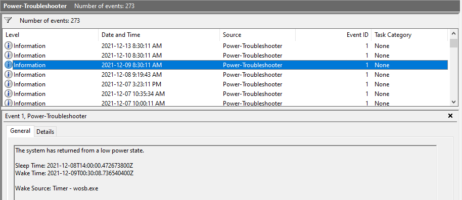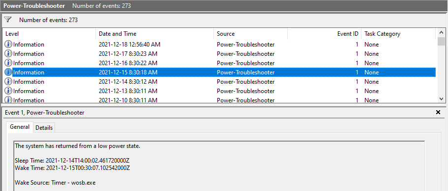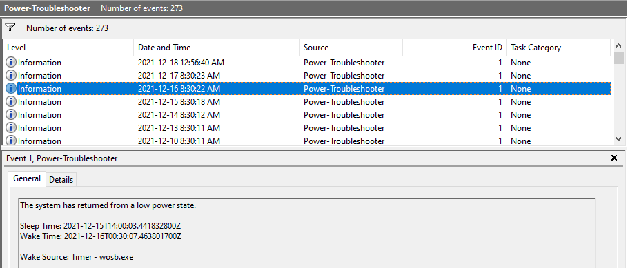Example of Task Scheduler successfully put PC to sleep. | Example of wosb.exe successfully wake up PC. | |