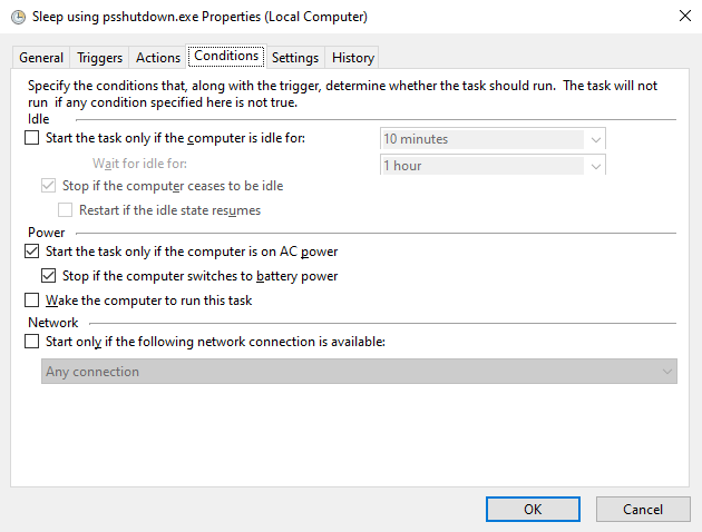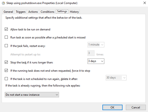 - “psshutdown.exe” and “Wake-Up from Sleep” (Windows Task Scheduler) are NOT working — it can sleep, wake-up but after 5 minutes will return to sleep, it cannot stay awake.