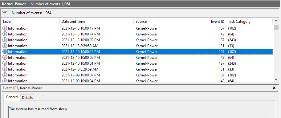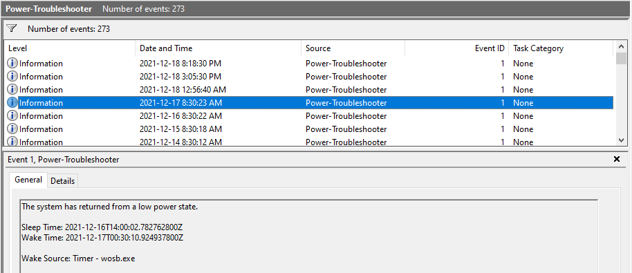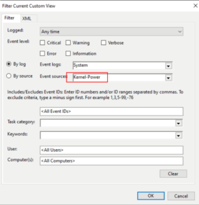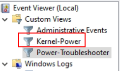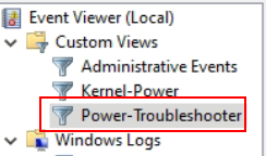 Create 2 custom views for “Kernel Power” and “Power-Troubleshooter”.