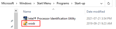 Place “wosb.exe” in “C:\Users\mobitek1\AppData\Roaming\Microsoft\Windows\Start Menu\Programs\Startup” so that the program can autorun whenever the PC is rebooted.